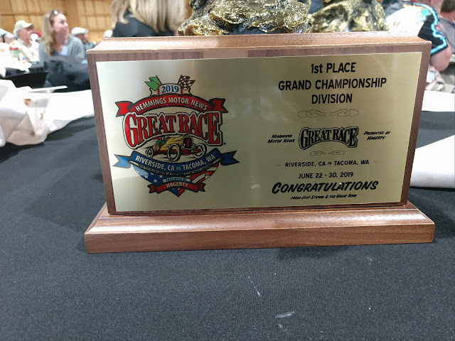 Typically the race is much closer than that, such as last year when the top four finishers all had scores within the same second, which is why the Great Race is scored down to a hundredth of a second. So this win was unprecedented. It also means the Sharp team had to lead the scoring most every day, which they did... for seven out of the nine days. They did it in an open car which makes it even more of an accomplishment.